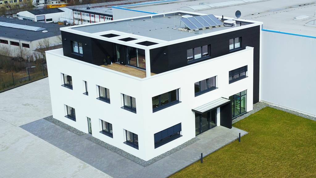 Ce bâtiment modulaire est convaincant à tous égards grâce à la haute qualité des différents matériaux, à la conception architecturale, à l'équipement économe en énergie et à la technologie de surveillance et de sécurité. Il démontre la forme illimitée et contemporaine des bâtiments modulaires.